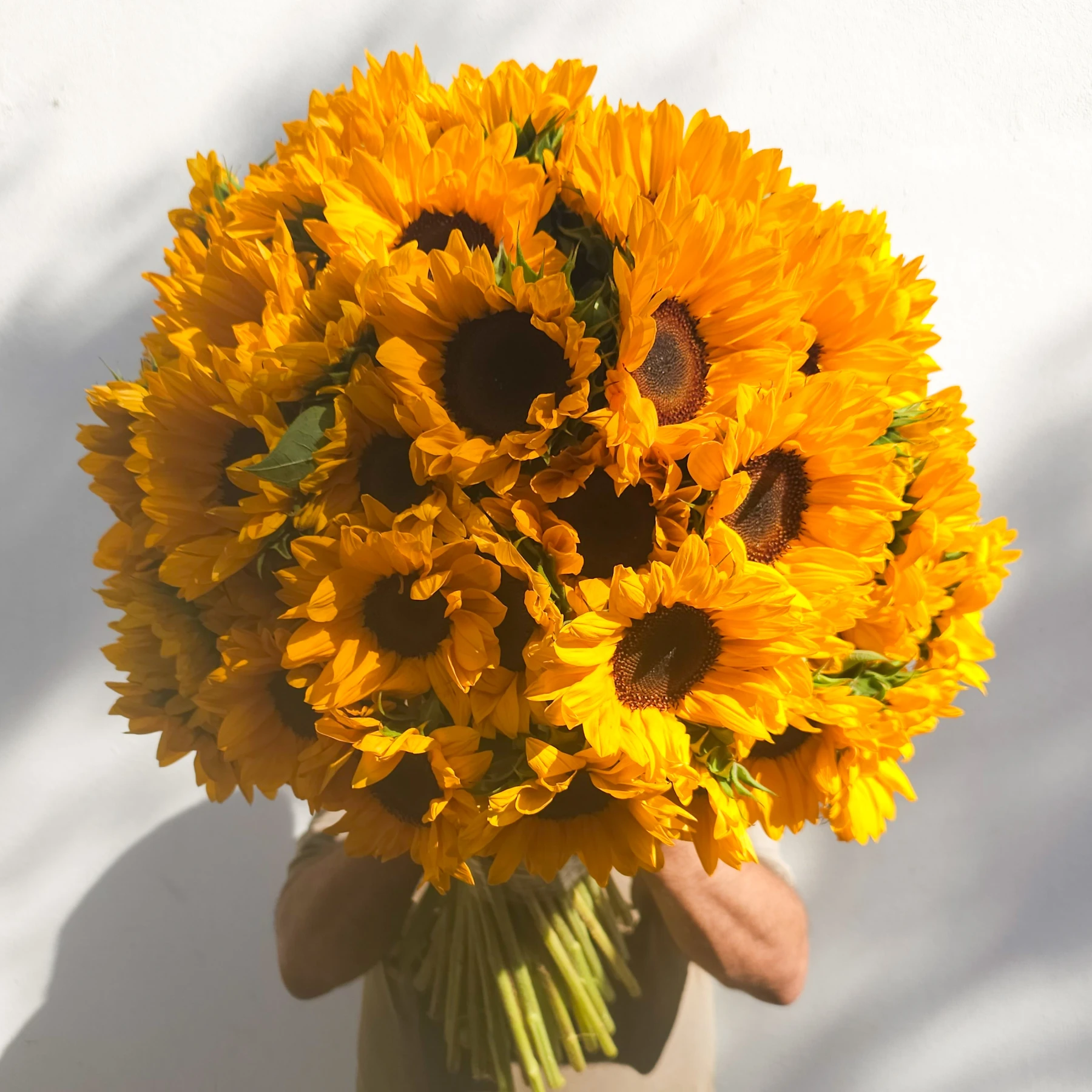 A large sunflower bouquet of 60 fresh stems, full of warmth and light.